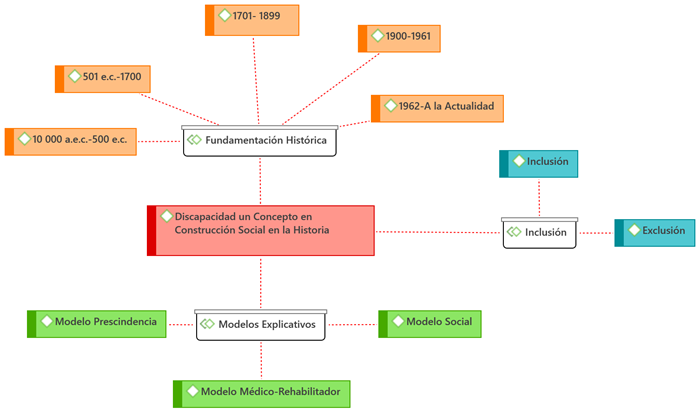 El objetivo de la revisión sistemática es analizar, en la literatura existente, los elementos conceptuales que han cambiado diacrónicamente en la construcción del concepto de discapacidad, y en ello, identificar las formas conceptuales para referirse a las personas con discapacidad, partiendo del panorama histórico de los tres principales modelos explicativos -prescindencia, médico-rehabilitador y social-, y el trato social designado a este grupo de personas en los distintos momentos cronológicos y contextos sociales, de tal forma que lleve a responder: ¿Cómo se ha transformado el concepto de la discapacidad a través de la historia?
