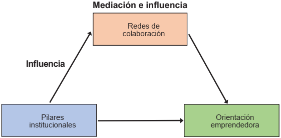 H4: Existe un efecto mediador de las redes de colaboración en la relación de los pilares institucionales y la orientación emprendedora