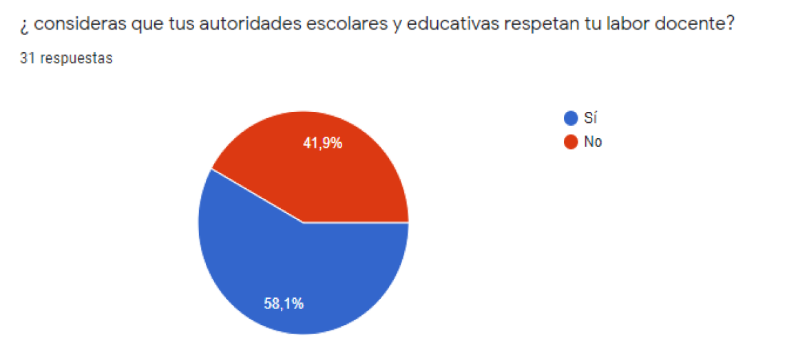 III. El respeto a la labor docente sigue siendo un tema pendiente en la agenda de revalorización iniciando por las autoridades escolares y educativas, que se ha puesto de manifiesto por la invasión a tiempos que se supondrían personales, invasión que en muchos casos llegó hasta en la imposición de una formato de planificación en tiempos de pandemia por el equipo de supervisión escolar e incluso marcado por presiones de índole político en épocas electorales por parte de supervisores y directores escolares19, olvidando un tanto las prerrogativas enunciadas en el artículo 31 constitucional. En este sentido, en entrevista telefónica, los informantes refirieron verse afectados en el área emocional por el estrés provocado ante la falta de políticas institucionales claras. Así, los participantes en el estudio manifestaron lo siguiente: