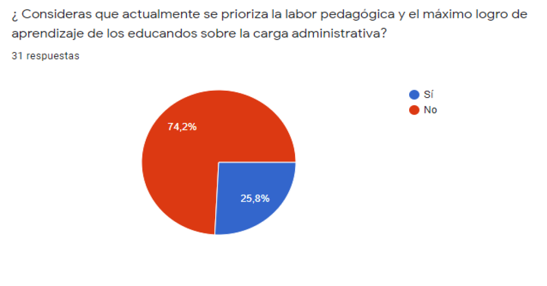 Las respuestas emitidas se dan en el sentido de la exagerada carga administrativa, que si bien se advierte se ha potenciado en tiempos de pandemia, infortunadamente se ha “normalizado” en la práctica docente cotidiana, y para muestra lo abordado durante la séptima sesión de consejo técnico escolar desarrollada el pasado 21 de mayo de 2021, en la que se modificó un tanto el producto esperado enunciado en la guía, al explicitar la redacción de una ficha descriptiva de una niña o niño que presentan más retos en sus procesos de bienestar, desarrollo de la creatividad y aprendizaje, y tomándola como la tarea de realizar una ficha por estudiante, diligencia que si bien es deseable, administrativa aún más la tarea docente en consideración a las ya de por sí asignadas.