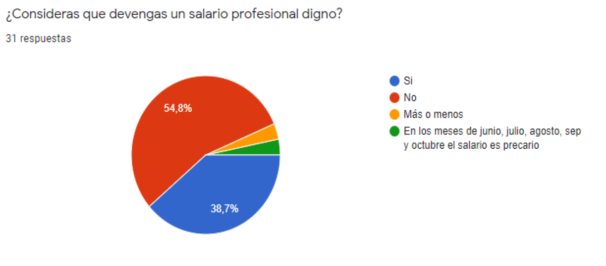 15 de los 31 encuestados perciben que el salario devengado no es digno, a este número se deben sumar 3 más que lo perciben mediano, por lo que el porcentaje se incrementa a 58% aproximadamente. Vale destacar que los 13 compañeros restantes han sido sujetos de una promoción por lo que son 3 directores escolares, 3 asesores técnico-pedagógicos, 2 promotores y un pedagogo “A” y 4 de ellos lograron su incorporación al programa de carrera magisterial con un nivel mínimo de “B”, hecho que en sí mismo mejoró sus ingresos, pero que en 2013 desaparece aparejado a la reforma del 26 de febrero de ese año. Es de llamar poderosamente la atención, el número de horas con las que ahora se contrata a los docentes en educación secundaria, cuya media es de entre 10 y 15 horas y obviamente el salario devengado con esa condición.
