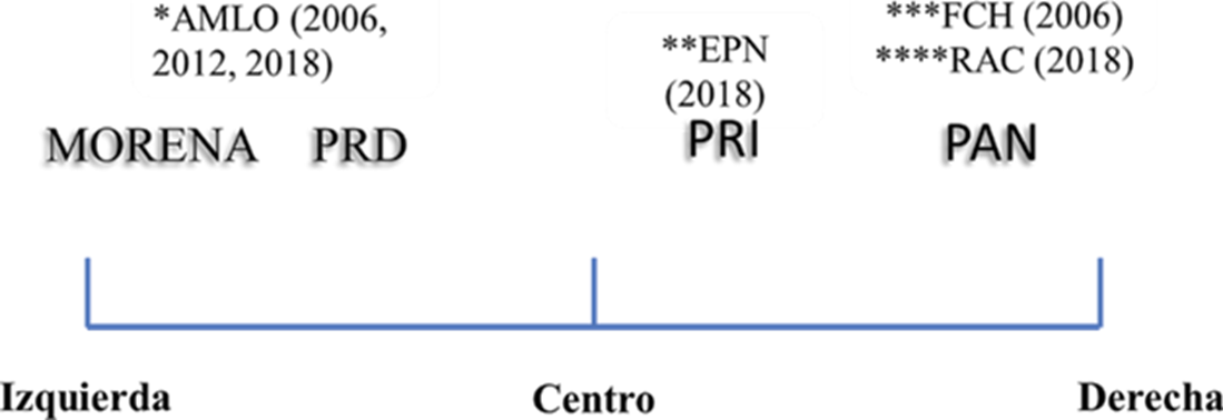 Figura 1 Espectro ideológico-político en México y candidatos que han participado en las elecciones en representación de cada partido político