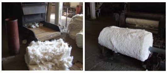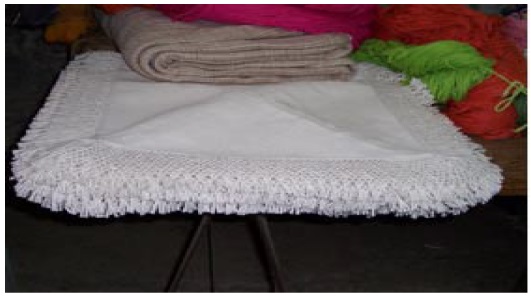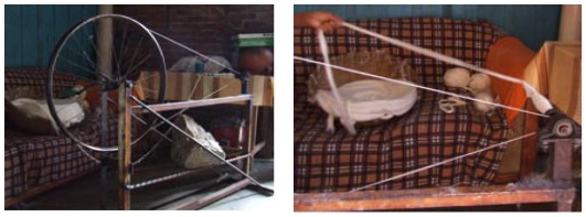 En lugar de buscarle perfección se busca una variación en el hilo, y éste es un aspecto muy artesanal que representa a veces un 30% de nuestra producción... (se usa) sobre todo como decoración de interior... de cortinas, colchas, etc.. Otro punto donde hubo lugar (para la innovación) pero nunca se le ocurrió a nadie preguntar, era usar el algodón ya cardado para hilar a mano... Es que no existía en la artesanía actual ni el hilado ni el cardado a mano... Fuimos medio paso atrás... hilar el algodón ya cardado, pero (hacer el) hilado a mano... No era un retroceso, estamos incorporando una cosa manual que ya se había olvidado... (Bundy y Walter, 15 de julio 2006).