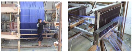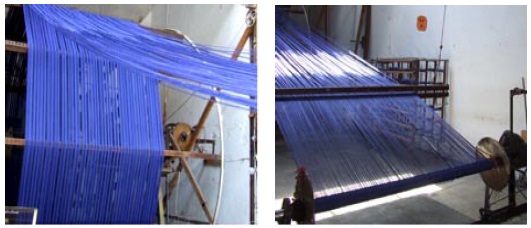 Ese es un solo urdidor y puede surtir a 20, 30, 40 telares, es como hacer película para 100 cámaras... así (se) justifica la inversión de un urdidor para satisfacer nuestras necesidades... Con el urdidor tradicional (es) casi imposible hacer lo que hoy día hacemos... Fue en el 58, entonces fue cuando hicimos el primer urdidor horizontal. (Walter, 13 de julio 2003).