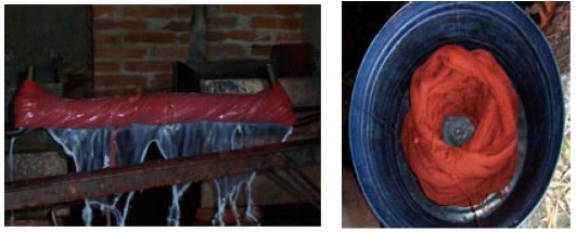 El hilo ya en madeja debe "descuidarse" para que suelte las impurezas del algodón (aceite y grasa). Después debe teñirse, hervirse, enjabonarse, enjuagarse y "azotarse" hasta que ya no suelte color. Después de esto debe almidonarse para hacerlo manejable y resistente. Las madejas almidonadas deben secarse a la intemperie.