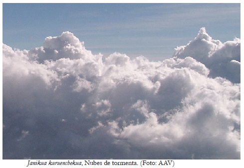 Como en muchos pueblos campesinos, la partición del ciclo anual en tiempo de lluvia y secas, pauta las prácticas rituales. Durante los meses de secas, los rituales suelen tener un sentido propiciatorio, como claramente es el caso de las festividades en torno a los manantiales y aquellos cuya finalidad es la de pedir la lluvia o asegurar que ésta se mantenga: la fiesta de la Santa Cruz y la de San Isidro (el 3 y el 15 de mayo respectivamente), la celebración del Corpus o Ch'anantskua (de fecha variable entre mayo y junio). Además de estas prácticas que se sustentan en variantes locales de la organización comunitaria, son recurrentes otras prácticas de protección ante granizadas o borrascas. Ante la proximidad de una borrasca que la gente sabe reconocer con certeza, es común que salgan a la parcela o al solar a esparcir agua bendita3 al tiempo que se reza alguna plegaria, en tanto que las temidas culebras de agua son ahuyentadas blandiendo un machete frente a ellas con la intención de cortarlas.