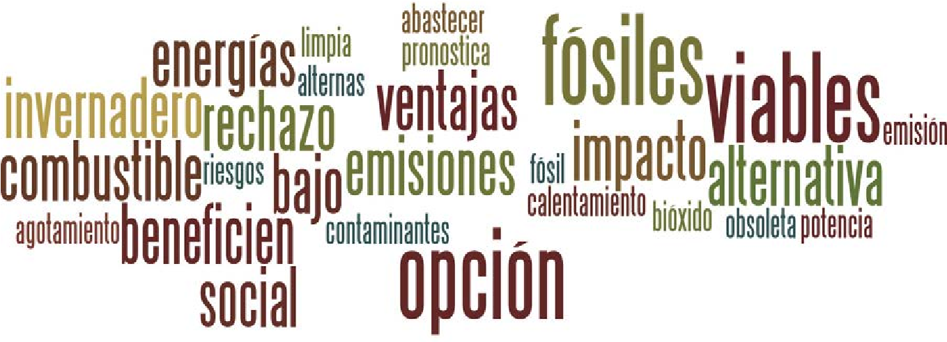 De acuerdo con la información obtenida de la nube de palabras, se destaca que las mini hidroeléctricas están consideradas como una opción de energía limpia debido a que no utilizan combustibles fósiles ni generan gases de efecto invernadero u otro tipo de contaminante; pero existe un rechazo social contra dichos proyectos pues las comunidades no se ven beneficiadas en ningún sentido; además, a esto se suma que, incluso actualmente, en otros países ya se consideran como alternativa obsoleta (Figura 4).