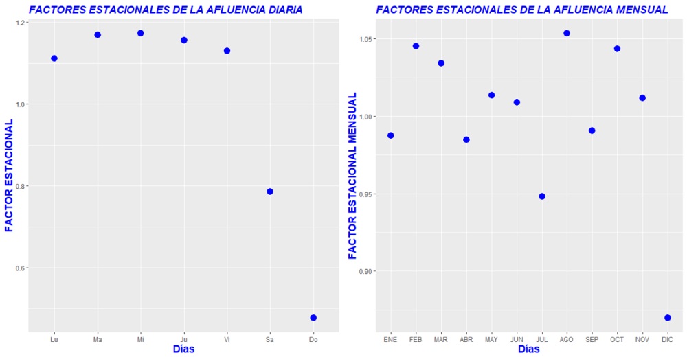 En la tabla 1 y figura 3, se muestran los resultados obtenidos del cálculo de los factores estacionales tanto para los meses del año como los días de la semana.