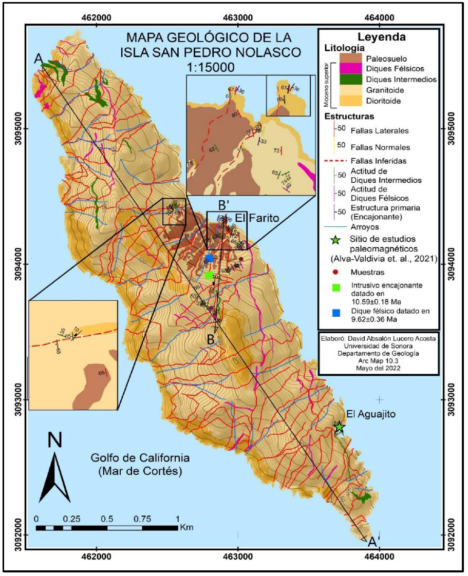 Las unidades reconocidas y mapeadas, y el conocimiento de otras islas del Golfo de California, permite evidenciar que las rocas intrusivas del Mioceno tardío son únicas y solo expuestas en la ISPN. De acuerdo con las edades reportadas por [11], el emplazamiento de estas unidades tuvo lugar en las primeras etapas del rifting continental del proto-Golfo de California.