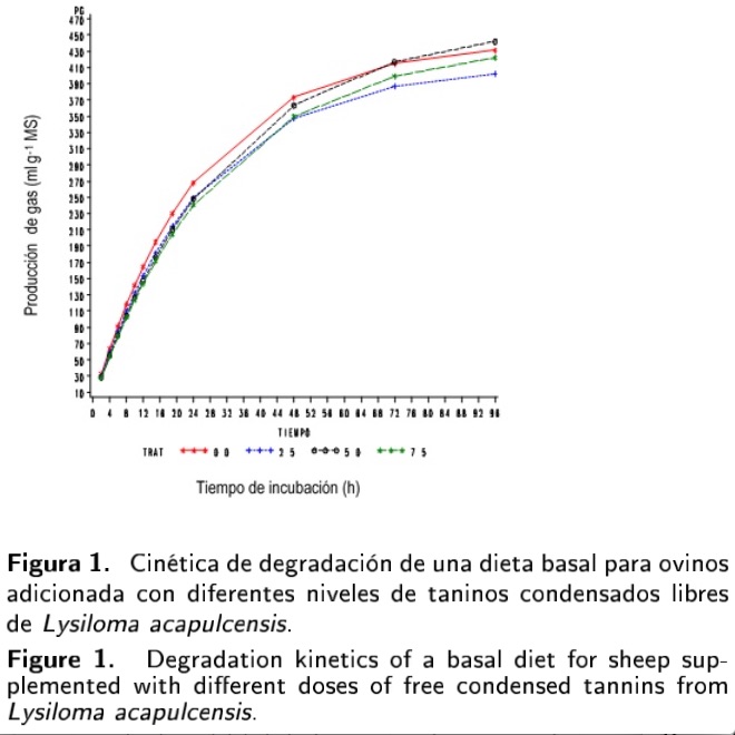 Desde el punto de vista metabolico, se ha observado que los TC reducen la degradación de los carbohidratos estructurales al disminuir la población de bacterias celulolíticas (Makkar et al. 1995). Estudios in vitro han demostrado que los taninos en concentraciones superiores a 7 % en la dieta, tienen efecto defaunador, lo que provoca deficiencias en el aprovechamiento de la proteina metabolizable a nivel intestinal (Hess et al. 2003a, Cardozo et al. 2004, López et al. 2004). El principal factor que tienen los TC en el rumen es formar complejos con las proteínas de los alimentos, bacterias y protozoarios; se ha encontrado que concentraciones superiores a 50 g de TC kg-1 MS en el rumen, puede disminuir la concentración de nitrógeno amoniacal (N-NH3), ya que secuestran los compuestos nitrogenados, lo que reduce la actividad proteolítica de las bacterias ruminales (Hess et al. 2003b, Min et al. 2003). En este sentido, debido al contenido de TC en las leguminosas arbóreas, resulta importante evaluarlas a pesar de que se han hecho investigaciones en géneros como Leucaena y Lysiloma; sin embargo, los resultados son contradictorios debido a factores como la dosis de TC, estado fisiológico de la planta y de los animales, por tal motivo en esta investigación el objetivo fue evaluar el efecto de los TCL del extracto de Lysiloma acapulcensis, en diferentes dosis en ensayos in vitro e in vivo, sobre la cinética de degradación del sustrato, digestibilidad, concentración de N-NH3 y la población de protozoarios ruminales en ovinos.