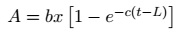 Donde: A= volumen total de gas producido en el tiempo t, b= máxima producción de gas producido hasta alcanzar la asíntota (mL g-1 MS), c = tasa fraccional de producción de gas (%/ h-1) y L= fase lag (h).