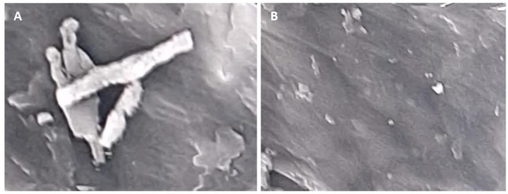 La morfología superficial de las muestras se examinó mediante un microscopio de barrido con emisión de campo (FE-SEM) de la marca Tescan, modelo MIRA 3LMU, de alta resolución, con un detector de electrones secundarios. Las muestras se secaron y recubrieron de oro mediante un bombardeo iónico de capa fina, y se observaron con una aceleración de voltaje de 10 kV.