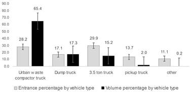 Figure 2 Percentage of vehicle entries and corresponding waste volume contribution by vehicle type at the municipal composting center. *Other includes boxes, drums, small containers