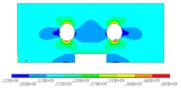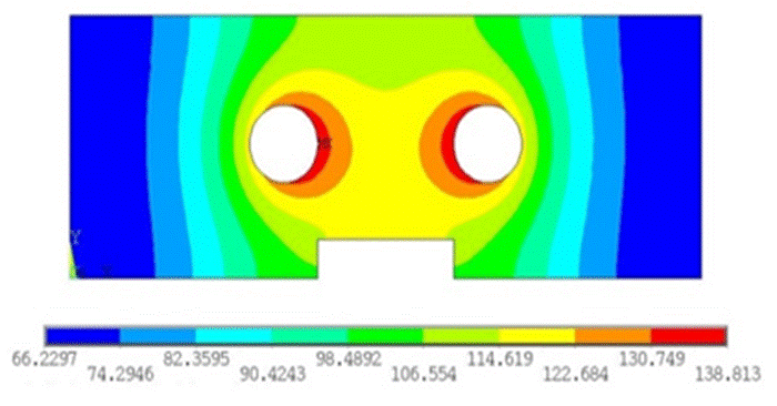 En las fases de llenado y empaquetamiento, la superficie de la cavidad del molde sufrirá una presión de cavidad grande. Por lo tanto, el molde debe ser lo suficientemente fuerte para reducir la deformación de la superficie de la cavidad y mejorar su vida útil. La posición de las resistencias eléctricas no sólo tiene un gran efecto sobre la eficiencia de respuesta térmica del molde, sino que también afecta significativamente su resistencia estructural. Por ejemplo, situar las resistencias eléctricas mucho más cerca de la superficie del inserto puede aumentar la eficiencia de calentamiento, pero disminuir la resistencia estructural del mismo. Como resultado, es necesario estudiar el efecto de la posición de las resistencias eléctricas sobre la resistencia estructural del inserto. La Figura 5 muestra el modelo de malla y las condiciones de frontera para el análisis de resistencia estructural.