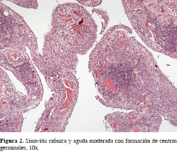 La presentación seudoséptica de artritis está definida como artritis que se asemeja a la artritis séptica en características clínicas y del líquido sinovial pero sin encontrarse agente infeccioso alguno en el abordaje microbiológico exhaustivo.4 Las etiologías de esta entidad con mayor frecuencia reportadas en la literatura se encuentran en pacientes con artropatías inflamatorias crónicas que suspenden el tratamiento inmunosupresor,6 artropatías microcristalinas,7 enfermedad de Lyme,8 material protésico,9 ácido hialurónico intraarticular,10 sinovitis crónica por cuerpo extraño11 y artropatía de Charcot.12