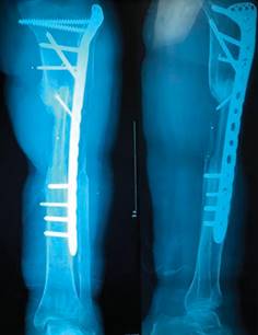 Figura 7: Resultado de reintervención de osteosíntesis de fractura de consolidación proximal con placa LCP tibia proximal.
