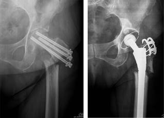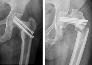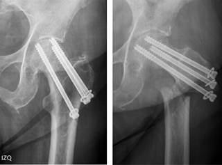 Se han utilizado diversos implantes para el tratamiento de esta complicación (DHS [dynamic hip screw], clavos gamma, artroplastía).9,11,12,13,14,16 Es preciso individualizar cada caso, analizando el estado de consolidación de la fractura previa y las condiciones generales del paciente.