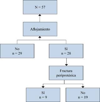Aquellos pacientes que sólo presentaran signos radiológicos o clínicos, pero no ambos, fueron excluidos del estudio. Se excluyeron también las fracturas periprotésicas que involucraron el componente acetabular, así como cualquier cuadro infeccioso que justificara el aflojamiento y/o la fractura, evaluando únicamente los aflojamientos asépticos. Para minimizar el riesgo de sesgos, fueron excluidas del estudio las fracturas provocadas por traumatismos de alta energía, las fracturas patológicas de origen oncológico y todo paciente que ya tuviera algún recambio protésico previo en la cadera afecta (evaluación únicamente de implantes primarios).