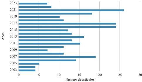 El autor ha revisado 41 metaanálisis y revisiones sistemáticas publicadas hasta Diciembre del año 2023 sobre cirugía navegada comparada con cirugía convencional en ATR. Se revisaron manualmente las bases de datos EMBASE (Excerpta Medica Data Base, Elsevier B.V., Amsterdam, The Netherlands), Web of Science (Clarivate, Londres, UK) que recoge el Journal Impact Factor y publica anualmente el Journal Citation Reports, PubMed central/Medline (National Library of Medicine, Betthesda, USA) y Cochrane Library (Cochrane, Londres, UK). La búsqueda se realizó atendiendo a las palabras «meta-analysis» OR/AND «systematic review», «total knee replacement» OR/AND «total knee arthroplasty», «navigation», OR/AND «computer assisted surgery» que aparecían en el título del artículo o en las palabras clave. Los metaanálisis analizados fueron publicados mayoritariamente en los años 2012, 2014 y 2020 (Figura 3) y estaban escritos sobre todo en lengua inglesa y sólo algunos pocos en alemán u otros idiomas. Los metaanálisis se dividieron en tres grupos ordenados por orden cronológico de publicación: metaanálisis donde se analizaban exclusivamente la alineación de la extremidad y la posición de los componentes (Tabla 1), metaanálisis donde se analizaban diversos aspectos, incluidas complicaciones y técnica quirúrgica (Tabla 2) y otro grupo donde se encuadraron los resultados clínicos y/o funcionales (Tabla 3).