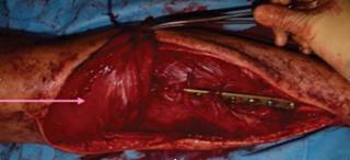 Figure 6: Medial gastrocnemius flap used to cover anterior defect.