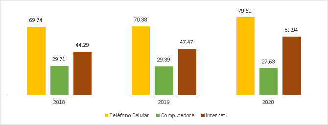 Debido a que la presente investigación se circunscribe a la esfera digital, resulta fundamental señalar datos respecto al uso y acceso de las redes sociales digitales en Bolivia. En primera instancia, el Instituto Nacional de Estadística (INE) establece como primer parámetro el acceso a algunas Tecnologías de Información y Comunicación, según lo establece en el gráfico 1