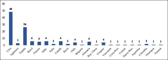 Gráfica 2. Países de en los que hay colaboración con otros Grupos de Investigación