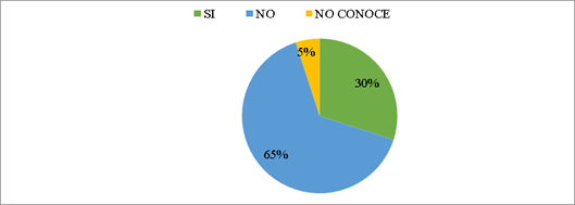 La primera pregunta realizada muestra la percepción de las personas en cuanto al cumplimiento de los derechos de petición, arrojando que un 65% de las personas encuestadas indica que la procuraduría no está velando el cumplimiento del derecho de petición, por su parte el 30% dice que si se está viendo dicho cumplimiento y finalmente el 5% desconoce el tema, hasta este punto se puede observar que es alto el nivel de percepción de cumplimiento de la Procuraduría para la ciudadanía, derivado del nivel de eficacia y eficiencia que refleja la institución a la hora de las respuestas emitidas por la institución así como el tiempo de contestación de la misma, ahora más tarde se observará qué pasa con los informes presentados por la procuraduría en contraste con esta información presentada (ver figura).