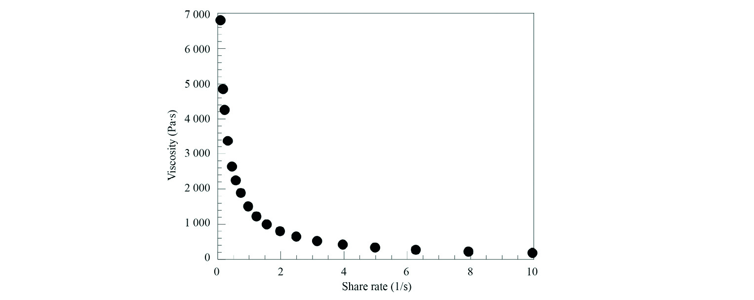 Figure 1 shows the viscosity curve of coffee husk flour in a shear rate range of 0.1 to 10 rps at 25 °C. The behavior of viscosity is a representative curve of pseudoplastic fluids since this is characterized by a decrease in viscosity as the shear rate increases, which is due to the reduction of friction between the layers, similar results had Li et al. (2019), who reported a decrease in viscosity with the increase of frequency in yam doughs. The viscosity of the flour suspension presented a viscosity range from 6797 to 171.6 Pa·s at 25 °C in the share rate range from 0.1 to 10 rps. The viscosity of CFH was higher than the viscosity reported by Li & Zhu (2019) for kiwi fruit flour, who reported a maximum viscosity value of 2.6 Pa·s for cold kiwi fruit paste. Also, the viscosity of CFH was higher than the viscosity reported by Li et al. (2019) for yam doughs, who reported values from 150 to 10 Pa·s. In this regard, Lovegrove et al. (2017) point out that a high concentration of non-starchy polysaccharides increases the viscosity, so the high content of fiber in CFH causes an increase in its viscosity in the treated conditions.