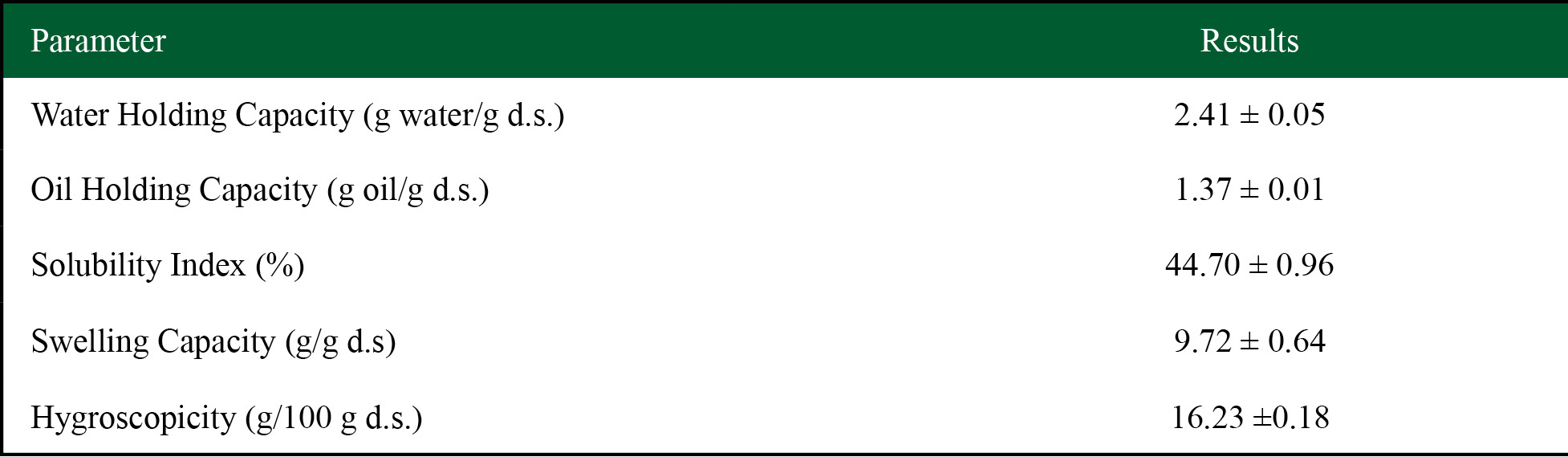 | Water Holding Capacity (g water/g d.s.) | 2.41 ± 0.05 |