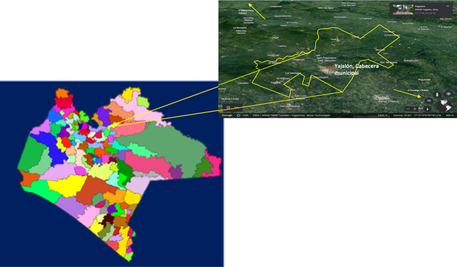 La unidad de estudio es la comunidad de Yajalón, Chiapas. Es la cabecera municipal del municipio del mismo nombre, la cual se localiza en la región XIV Tulijá-Tseltal-Chʹol, en las coordenadas municipales 17°10´24´´ de latitud norte del Ecuador y 90º20´01´´ de longitud oeste con respecto al meridiano de Greenwich (mapa 1), y se ubica a una altitud de 915 metros sobre el nivel del mar.