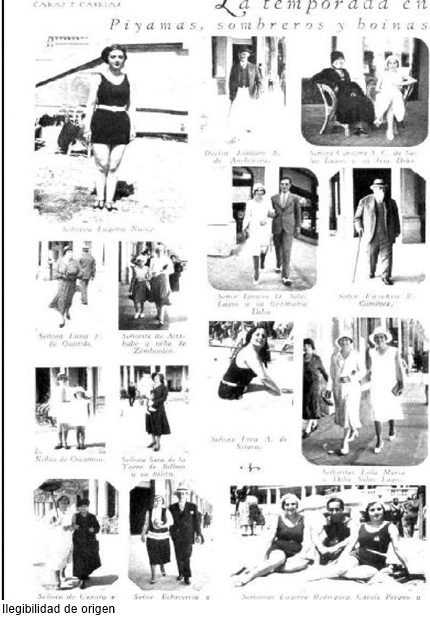 Al mismo tiempo, el alto porcentaje de mujeres sería coincidente con una estetización del mensaje gráfico. Como se anticipó líneas arriba, no puede soslayarse el hecho de que en la historia de la cultura visual occidental la figura del sexo femenino haya sido objeto de contemplación por excelencia y las revistas ilustradas no fueron una excepción. Otro punto a favor es la variable del espacio costero como un ámbito especialmente apto para que el cuerpo sea blanco de las miradas. Hay un interés medular por mostrar la corporalidad de la mujer como objeto de deseo, exaltar su belleza, menos cubierta y más desprejuiciada. Esta exhibición no se da con iguales características cuando el ámbito se refiere a eventos políticos o sociabilidades en clubes, hoteles, incluso en la rambla, contigua a la arena. Allí varones y mujeres comparten un modesto protagonismo en relación con la exaltación de los atributos corporales, mientras que la moderación la da el vestido.