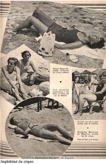 A partir de nuevos criterios estéticos aparecen otras formas de contacto y la búsqueda del bronceado. Hacia finales de la década de 1930 aumentan los retratos de mujeres en reposeras y acostadas sobre la arena por el placer de adormecerse, de no pensar en nada, de sentirse invadidas por el sopor (Caras y Caretas, 31 de octubre de 1931). Abundan las notas periodísticas y crónicas sociales sobre el interés que despierta el baño de sol y sus beneficios vinculados con sensaciones que se encuadran en el concepto de flow (Csikszentmihalyi, 1991 [1990]). Esto se experimenta en una actividad de ocio en la cual se pierde la noción del tiempo y se vive una gran satisfacción, donde el estado del cuerpo participa activamente. Los estilos de comportamiento son de tal informalidad que se puede pensar en la generación de una proxémica excluyente, en absoluto trasladable al protocolo establecido en un ámbito de uso social convencional y civilizado, entendido como contrapuesto al ambiente sensorial que viabiliza la playa.