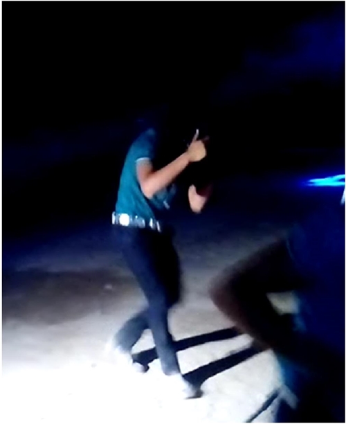 Los personajes “putivaqueros” y “jotos” tienen entre el grupo una connotación homosexual. Como indica Alejandro Madrid: “(los) mexicanos usan la palabra joto como un término peyorativo para homosexuales y ciertos tipos de comportamientos considerados poco masculinos” (2018, p. 87). A pesar de los constantes discursos que incitan al baile entre hombre y mujer, estos hombres suprimen el cuerpo femenino dentro del baile, de modo que es posible encontrarlos bailando solos o en grupos de hombres dentro, fuera y en la fila. Por esta razón, la comunidad establece una relación entre su performance dancística y la homosexualidad. A través de su baile se pone en juego su virilidad, la cual “incluso en su aspecto ético […] sigue siendo indisociable, por lo menos tácitamente, de la virilidad física, a través especialmente de las demostraciones de fuerza sexual […] que se esperan del hombre que es verdaderamente hombre” (Bourdieu 2000, p.13). La no dependencia de otro cuerpo en el baile permite movimiento de manos totalmente a libertad del hombre, aunque muchas veces he observado que llevan los brazos semi contraídos y manos en puño; (Imagen 7) a este baile además se le adicionan movimientos sugerentes de cadera, de un lado a otro o de manera circular.
