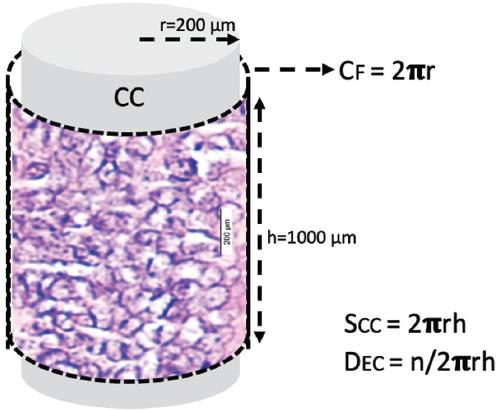 The central canal is a cylindrical surface. Ependymal cells are arranged on this surface like single-layer round cakes in a tray. Therefore, ependymal cell density is considered to be the number of cells per square millimeter. Here, we calculated the surface area of an average central canal section of 1000 μm at the C5 level and determined the number of ependymal cells in this area. We then considered the number of cells per 1000 square micrometers as the ependymal cell density.