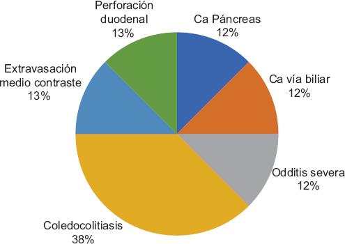 Las perforaciones duodenales post-CPRE tienen una incidencia que ronda entre el 0.8% y el 1.6%. En el Hospital Juárez de México, en el periodo que abarca este estudio, se encuentra una incidencia de perforación post-CPRE de 1.6%, que está dentro de la estadística mundial10.