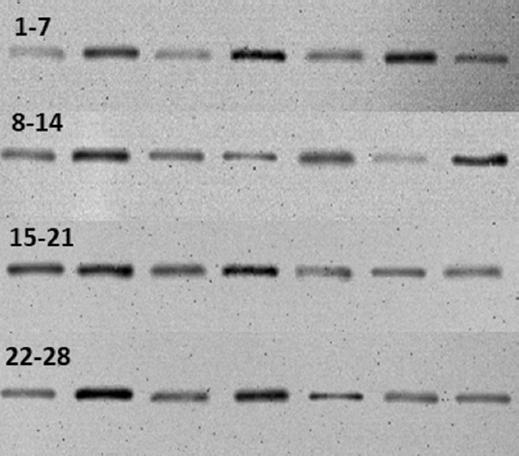 The mean age and follow-up duration of the patients were 88.6 ± 47.7 and 26.76 ± 16.6 months, respectively. According to International Reflux Grading System 14 (50%) renal units were grouped as low-grade reflux (Grades 1-3) while 14 (50%) renal units were in high-grade reflux group (Grades 4, 5). No family history of reflux was recorded in the patients included in this study. Of the 19 patients with 28 renal units, six patients with 12 units (42.9%) had bilateral and 9 patients with 9 units (32.1%) had unilateral scar formation on DMSA scintigraphy. Renal units were also grouped according to differential functions (≥ 40% and < 40%) obtained by renal scintigraphy and then compared in terms of protein expressions. In this series, the differential renal function was < 40% in 14 (50%) renal units whereas ≥ 40% in the other 14 (50%).
