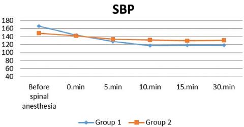Demographic data (age, gender, height, weight, body mass index [BMI], ASA, and additional diseases) of the patients participating in the study were recorded. SBP, DBP, and MAP values were recorded before SA, at the time of performing the SA (minute =0), and at the 5th, 10th, 15th, 20th, 25th, and 30th min after SA.