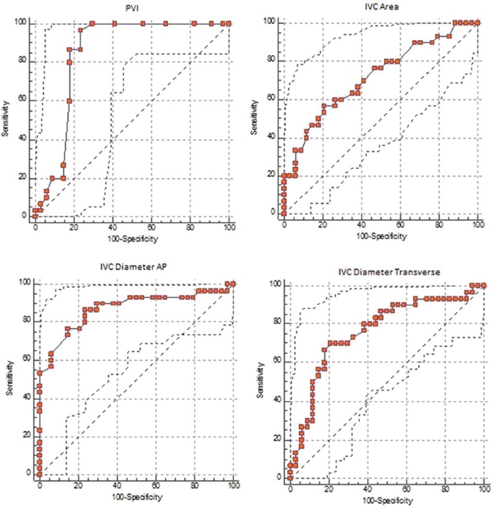 Table 4 Comparison of ROC analyses for PVI, IVC diameter AP, IVC diameter transverse and IVC area