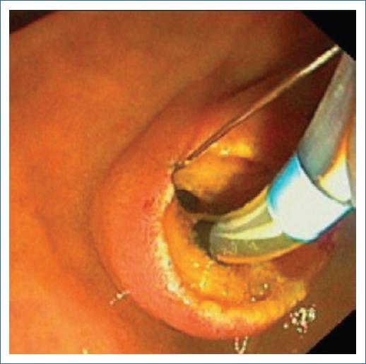 Cuando se realiza esfinterotomía, la extensión de la disección está en relación con el tamaño del cálculo y de la papila; sin embargo, se prefiere «destechar» la papila para tener un mejor acceso al conducto biliar común y disminuir el riesgo de estenosis. Es un procedimiento que no está libre de complicaciones, siendo las más comunes: pancreatitis, perforación del duodeno o del colédoco, sangrado e infección. La seguridad del procedimiento depende de muchas variables, que incluyen las enfermedades coexistentes del paciente, las indicaciones de la esfinterotomía y la experiencia del endoscopista4.