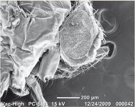 Práctica: a micro escalas, la práctica se concentra en visualizar insectos con el apoyo de microscopía de barrido electrónico (SEM), ver Imagen 1. A través del ejercicio de usar un SEM, el estudiante va de la práctica al entender del concepto de escala micro determinando el tamaño de algunos de los detalles en el cuerpo del insecto. Detalles que no son observables con sus ojos y que hacen también conciencia de la necesidad y relevancia de microscopios de barrido como instrumentos de apoyo para visualización a diferentes escalas.