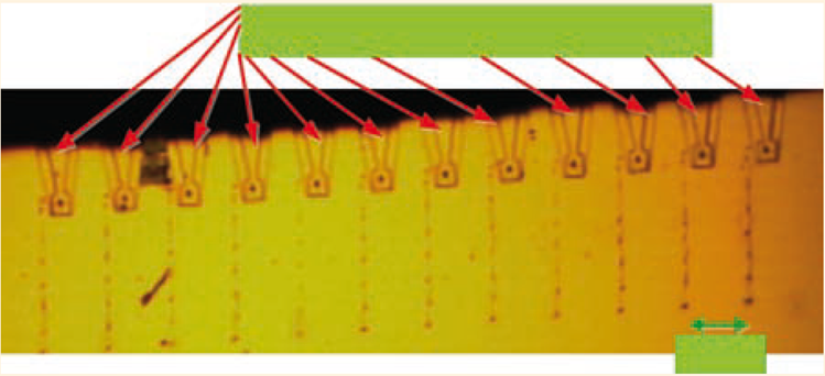 Imagen 7 Trazado y desbastado de zona con película delgada de aluminio. Fotografía tomada con microscopio de fluorescencia