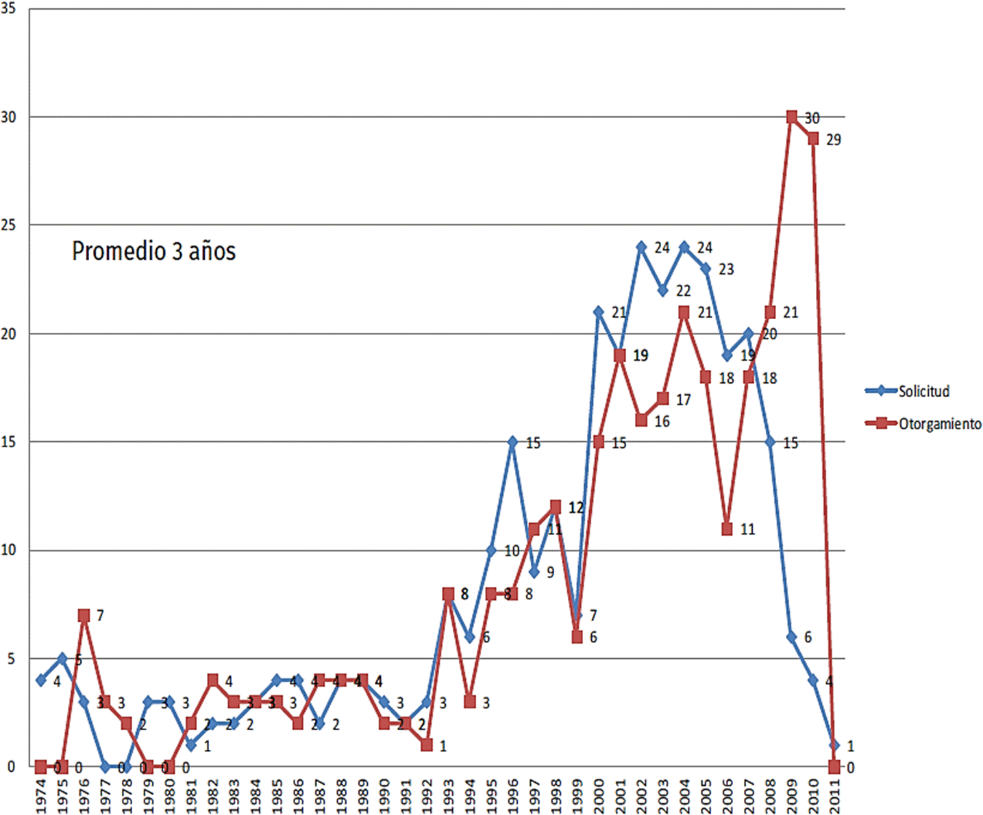 Gráfica 2 Brecha entre la fecha de solicitud y la fecha de otorgamiento periodo (1974-2011).