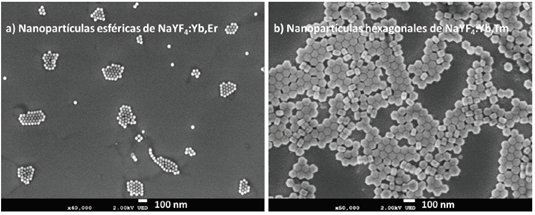 Figura 4 Micrografías obtenidas mediante STEM de nanopartículas de NaYF4: Yb,Er y NaYF4:Yb,Tm preparadas por el método hidrotermal.