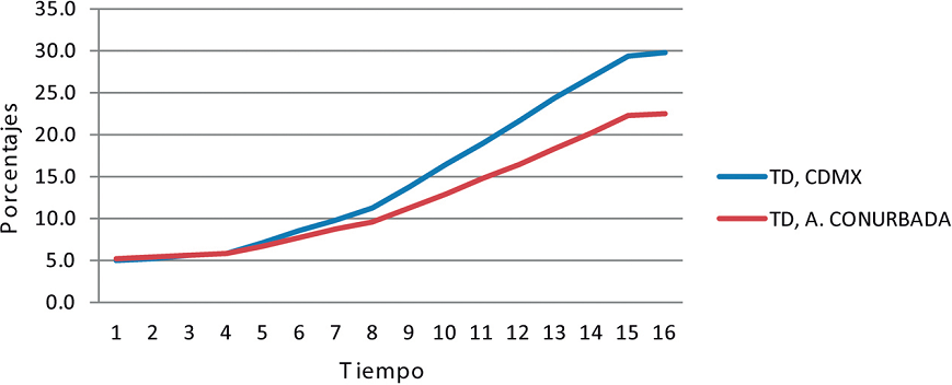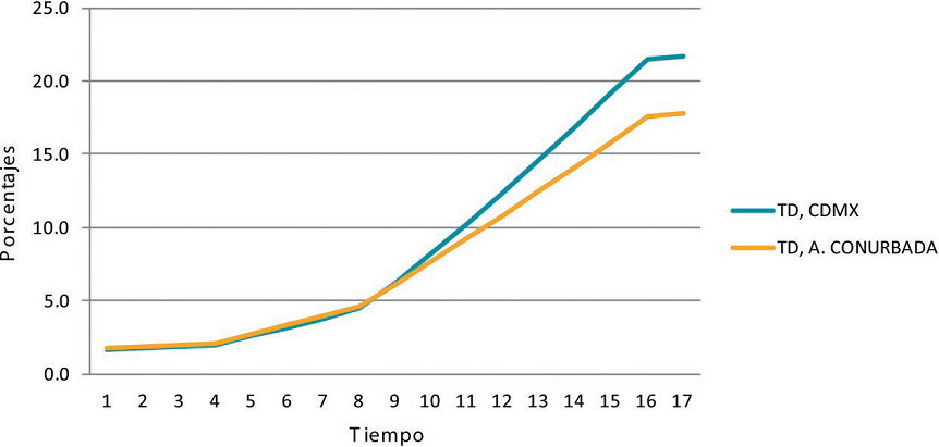 Figura 14 TD en la CDMX y en el área conurbada, 2010.