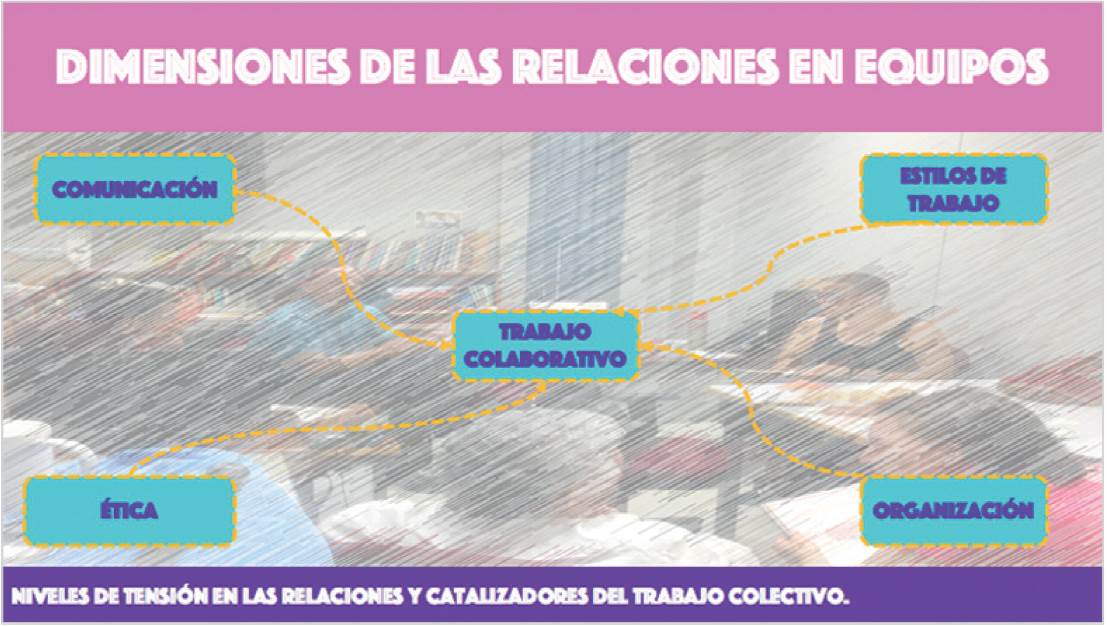 Por esos nodos tensionales es que no se asume que el trabajo grupal sea, por defecto, trabajo en equipo. Los equipos de trabajo se construyen mediante el relacionamiento y la correspondencia, son el resultado de la interacción y por tanto de la creación de mecanismos de resolución e institucionalización de las tensiones o el conflicto. Esta lógica de relacionamiento implica apertura, escucha (o la lectura), así como el reconocimiento del otro como un sujeto en condiciones de enseñarnos y de aprender con nosotros.