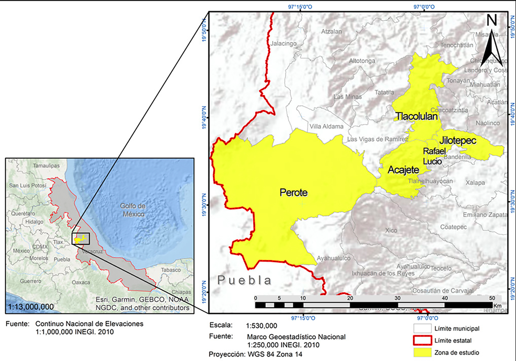 El caso de estudio se ubica en una localidad perteneciente a la montaña del Cofre de Perote, ubicada en la subprovincia fisiográfica denominada Lagos y Volcanes de Anáhuac en la provincia del Eje Neovolcánico Transversal del Centro de México con una altura de 4 mil 250 metros sobre el nivel del mar, situándose como la octava elevación de mayor altitud en México. En esta región se decretó, en 1937, el Parque Nacional Cofre de Perote (PNCP), siendo una de las primeras reservas naturales en el país.