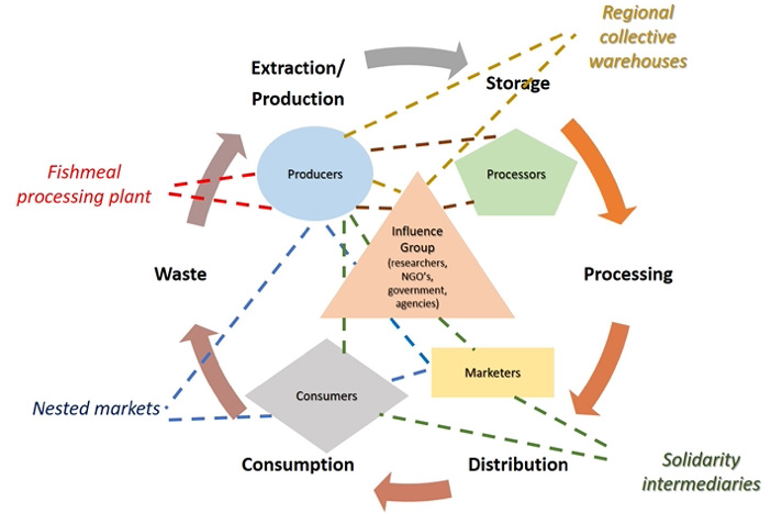 The exclusion processes of the global food regime for small-scale fishers and farmers in Mexico can be approached from several perspectives. The present study used our context-specific transdisciplinary experience, which derives from almost three decades of working closely with local communities, civil organizations, government agencies and research groups in the Yucatan Peninsula. Consequently, we have identified that the complex processes of exclusion of the global food regime act under a structuring process of neoliberalism where, to date, there has been a gradual dismantling of Mexican fishing and agricultural means of production, commercial organization and food sovereignty. Such productive, commercial and food dismantling is the result of how the nation-State respond to the logics of global agreements known as “conditionality lending” (De Moerloose 2014; Vordtriede 2019, 1), where signatory countries, like Mexico, modify their laws and carry out structural reforms following a development agenda dictated by the financial institutions that grant them the loans. The conditionality lending encompassing modification of national laws together with structural reforms has been taking place in other Latin American countries as well, including Argentina, Bolivia, Brazil, Cuba, Colombia, and Honduras (Bello-Baltazar et al. 2020). In the case analyzed in our study, since small-scale producers are at the bottom of the market linkage, they present precarious income conditions and very little maneuverability in terms of their commercial process in regional and national markets. As a result, many coastal and agricultural communities tend towards food insecurity. In relation to this problem, we do not consider that the Mexican government has the full capacity to maneuver in the short term to help these food systems and rural producers to improve their situation. Our proposed transdisciplinary approach is therefore based on the argument that collaboration between social subjects of the LSES, mainly between the group of producers and academia, is fundamental in order to reverse the conditions of vulnerability imposed by global food regimes in those territories without explicit manifestations of social mobilization (Herrera and Guerrero-Jiménez 2020). Other actors, such as thoughtful consumers and solidarity intermediaries, must play a central role in collaborating to construct new local commercial networks or nested markets (Van der Ploeg et al 2022) and a place-based food culture, given the lack of localized scope of public policies. In this collaboration, mainly fishers and farmers will make use of their visions to identify and enable innovation niches, in such a way that will allow them to articulate in complementary TPCC circuits of fish (of medium and lower economic value) and basic agricultural products that connect coastal areas, the rural hinterland and small and medium-sized cities within micro or meso regional contexts.