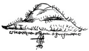 En la parte superior se representaron dos cerros en forma europeizada. El más grande tiene la leyenda “este es el cerro de aguazguatepec” (Figura 7b) y en el más pequeño dice “este es el pago6 que llaman de tochomeguacan” (Figura 7c). En la parte inferior del mapa se colocó una serie de montañas que no tienen glosa (Figura 7d).