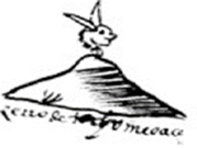 Del otro lado del camino, igual hacia el lado derecho, el pintor plasmó otro cerro similar al anterior. Esta vez en la cima colocó una cabeza de conejo con las orejas alargadas. La glosa debajo del cerro dice “zerro de tochomeoca” (Figura 5c).