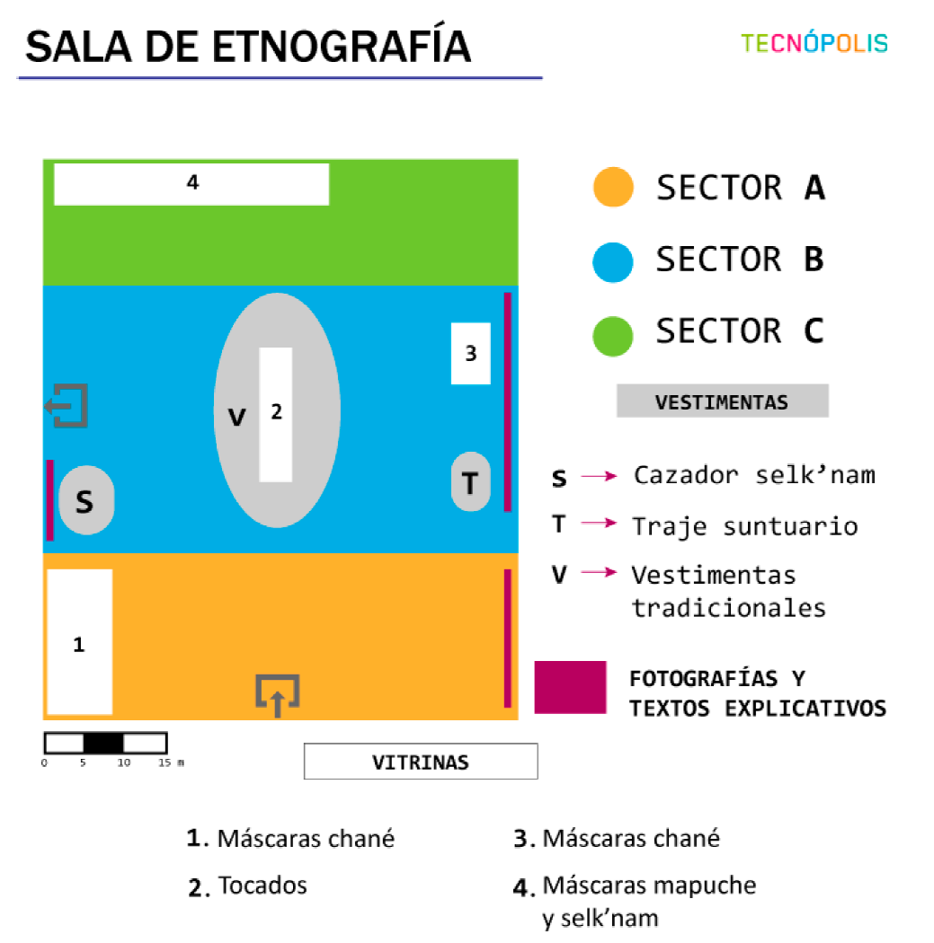 De manera similar, la sala Etnografía también ha sido segmentada en tres sectores (A, B y C) (Figura 3).